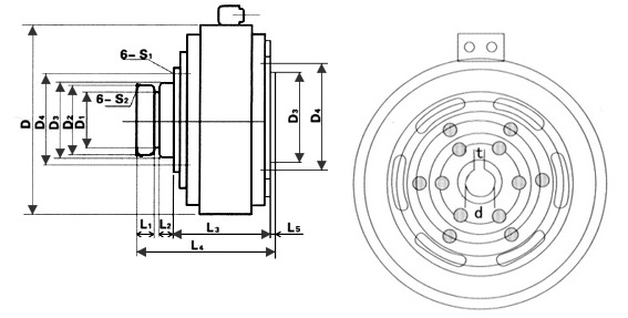 磁粉離合器是由傳動單元(輸入軸)和從動單元(輸出軸)合并而成。在兩組單元之間的空間,填有粒狀的磁粉(休積大約40微米)。當磁性線圈不導電時,轉矩不會從傳動軸傳于從動軸,但如將線圈電磁通電,就由于磁力的作用而吸引磁粉產(chǎn)生硬化現(xiàn)象,在連繼滑動之間會把轉矩傳達。